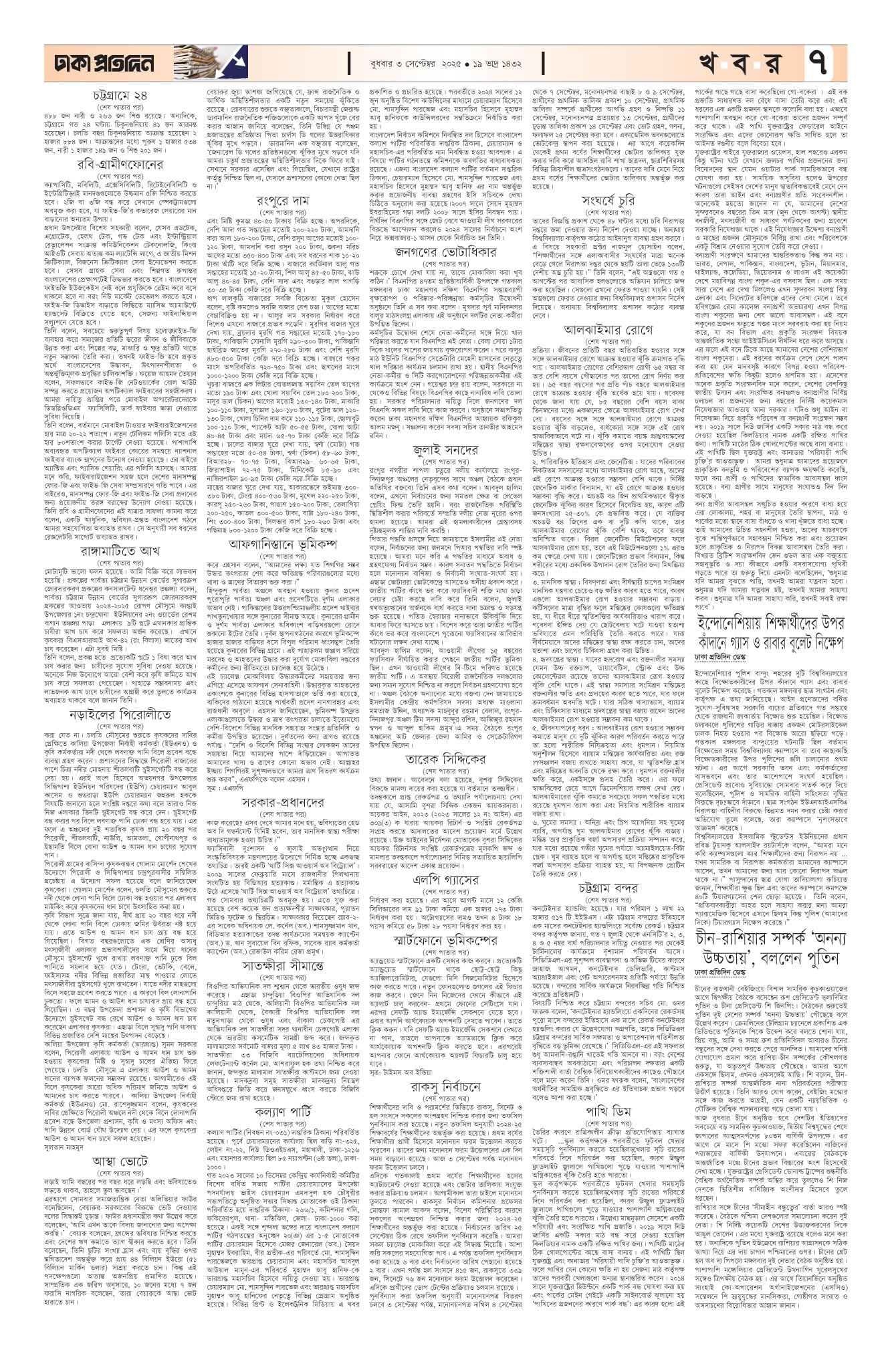 বুধবার, ০৩ সেপ্টেম্বর ২০২৫, ১৯ ভাদ্র ১৪৩২